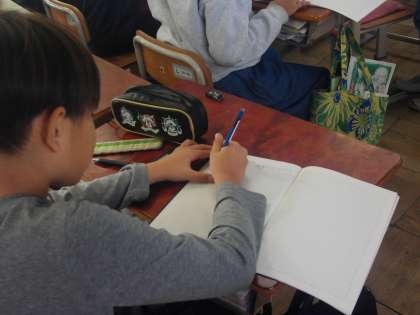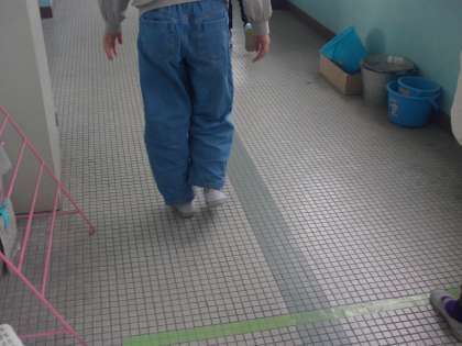 自分の歩幅をはかってから、ろうかで歩数を数えてろうかの距離を計算しました。「私はこの長さになったけど合ってるかな。」「先生、もう一度歩数を数えたい!」といったように、楽しく学習していました。