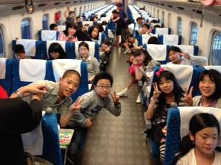 子どもたちを乗せた東京行きのぞみ号は,定刻に広島駅を出発し,一路京都に向かっています。全員元気です。子どもたちは事前学習にも進んで取り組んでおり,平和公園や宮島では意欲的に見学していました。お天気にもたいへん恵まれ,充実した2日間を過ごすことができたと思います。