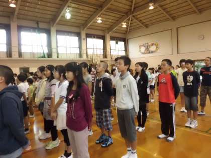 3日間の休みを終え今日から後期の学習がスタートしました。前期終業式は秋とは思えないくらい暑かったですが,始業式はとても涼しく,秋の訪れを感じました。今日から気分を新たにめあてをもって学習に取組んでほしいと思います。