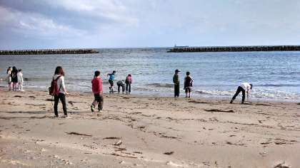 入浴,夕食までの間,宿舎の前の砂浜を散策しました。宿舎の前には