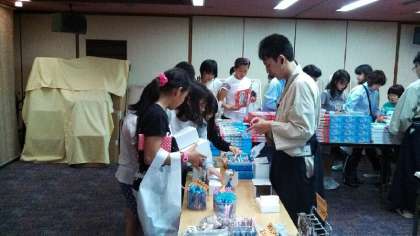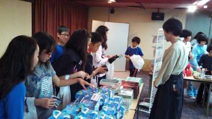 宿舎のコンベンションホールにおみやげ物の買い物コーナーを特設して