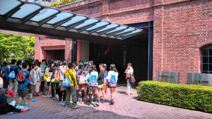 午前中はトヨタ産業技術記念館を見学しました。入館前に記念撮影をして,