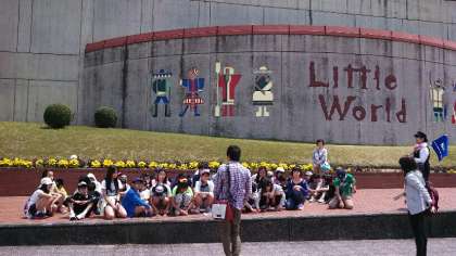 午後はリトルワールドを見学します。まず、全員で記念撮影をして,