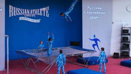 園内の展示物をみた後は,野外ホールでロシアアスリートサーカスを
