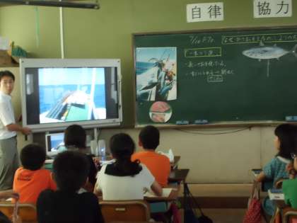 この日は,3時間目で,「カツオの漁法には一本釣りと巻き網漁がありそれぞれのよさについて考える」という目標で学習を展開しました。