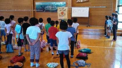 入所の言葉を代表の児童がしっかりと発表してくれました。そして、みさきの家の先生のお話を聞いて,オリエンテーションです。寝具の準備、後片付けの仕方などを教えてもらいました。