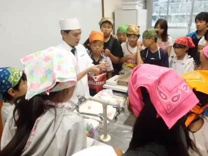 10月2日(木)午後3時から,家庭科室で6年生の参加希望児童対象に特別授業「和菓子作り&お点前体験」を行いました。6年生の総合的な学習の時間で「日本の伝統文化」について計画的に学習を進めていますが今日は,その取組をさらに充実・発展させていこうというめあてで,行いました。