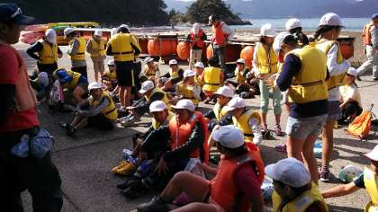 ずつにわかれて,全員で協力して湾内のコースを進みきりました。