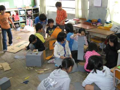 学習発表会に向けて,今週は台詞や合唱の練習だけでなく,小道具作りも行いました。学年全体で分担して行いました。みんなで協力して,それぞれが一生懸命に作ったので,短い時間ですごく良い物が出来上がりました。