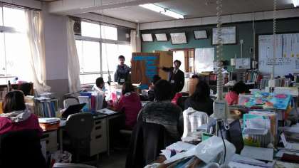 ALTのアリシャヒ・パーヘム先生が勤務される日の職員朝礼で,イングリッシュワンポイントレッスンを実施しています。