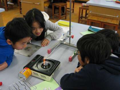 新しい年がスタートし,理科の学習ではさっそく実験を行いました。金属の棒や板を熱し,どのように温まっていくのかを調べました。金属にろうを塗ることで,より実験を分かりやすくしました。結果も分かりやすくて,驚きの声もたくさんあがりました。