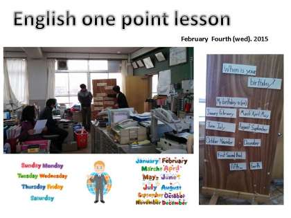 ALTのアリシャヒ・パーヘム先生が勤務される日の職員朝礼で,イングリッシュワンポイントレッスンを実施しています。