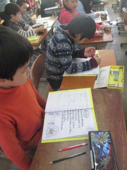 以前から9人の実行委員の子どもたちがしおりをつくったり,バスの中でみんなで歌をうたおうと企画をしてくれたりしました。司会・挨拶担当の子は放課後最後まで残って,一生懸命練習もしてくれました。そして,今日の5時間目みんなでしおりを見ながら月曜日の確認をしていきました。