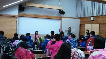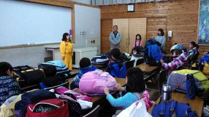 お弁当も食べ終わったので、退所式です。校長先生のお話、児童代表の言葉、そして花背山の家のスタッフの方のお話です。あっという間に過ぎた時間、ちょっともの足りなかったというというのが、子どもたちの本音でしょうか。でもとっても楽しいよい思い出がてきたと思います。