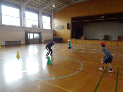 今日は,たいよう学級の体育の時間に一緒に学習しました。最初,体育館の中を走った後,日直が中心になって準備体操をした後,明日,縦割り集会でする「オクトパス」を最初に体ほぐしにしました。おに役をやっていただきみんな大喜びで逃げていました。