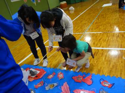 21日(土)佛教大学で京都市内の小学校と朝鮮初級学校との交流会が行われました。 本校からも参加しました。「友と共にひらけとびら」を合言葉に集まった子どもたちは,全体会の後,みかん・バナナ・ぶどうなどのグループに分かれてウオークラリー形式でゲームを楽しみました。グループのメンバーは,今日初めて会う子どもたちでしたが,みんなで力を合わせてクリアしていくゲームにあっという間になかよくなる子どもたちでした。
