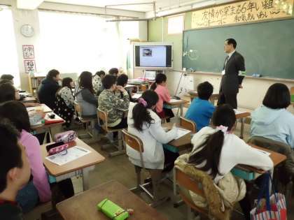 DVD資料やクイズ形式の活動も入れていただき,主体的な学びと行動化につながる思考活動が高学年の教室にて行われたと思います。