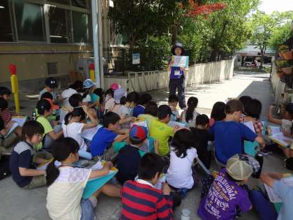 今日は,大宮通りを中心に探検に行きました。緑町公園や久我神社にも行きました。「大宮通りは,お店が多いね。」「通りの柱には,飾りがついていたよ。」「緑町公園には,お地蔵さんがあるよ。」などいっぱい見つけて帰ってきました。次は,自分たちが地図にしたいところを詳しく調べます。
