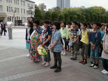 平和の集いを行い,紫竹小学校の子ども達の「平和への願い」が込められた折鶴をそなえてきました。