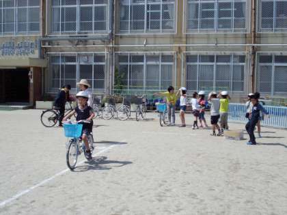 午前中に,5・6年生が活動した自転車走行コースを利用して,午後は5校時に3年生,6校時に4年生が安全な自転車走行の体験・練習をしました。