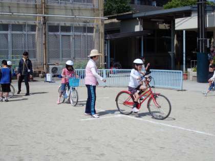 自分の体の大きさに合ったサイズの自転車を選び,乗車の仕方,直線走行.右左折の進み方等を練習します。