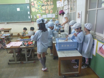 5月12日(火)11時より,あいにくのお天気の中でしたが,ふれあいサロンにて,PTA保健体育委員会主催の給食試食会が,1年生,4年生の保護者の方を対象に20名の参加を得て行われました。