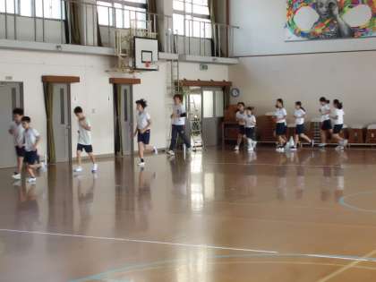 5月15日(金)の朝の練習では,持久力を試す・つけるために新体力テストでも取り組んでいる「20mシャトルラン」を取り入れました。