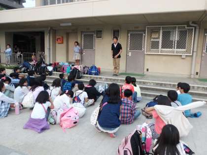 一泊二日の修学旅行も無事終えることができ,紫竹小学校の戻ってきて解散式を行いました。予定の午後5時40分を大きく過ぎ,6時過ぎに帰校となってしまいました。早くから子どもたちの帰着をお待ちいただいた保護者の皆様大変申し訳ございませんでした。今後の日程・予定作成に向けた反省材料としたいと思います。司会の児童の進行で解散式が進められ,代表児童の修学旅行の振り返りとまとめの言葉,先生方のまとめの言葉がありました。