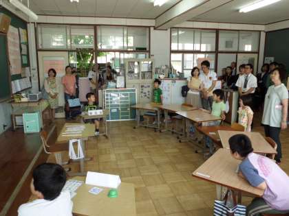 そして10時45分から30分間,たいよう学級の授業参観をしていただきました。30名を超える参観者が教室に入り,子どもたちはとても緊張していましたが,一生懸命国語の漢字の説明学習に取り組む姿に,参観者の方から感心されるお声をきかれました。