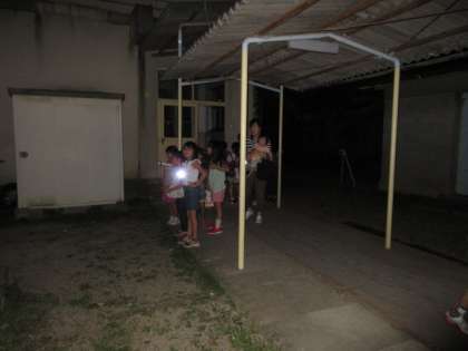 めったに夜の校舎を歩いて回るということは経験できなくて,しかもちょっとどっきりの若干恐怖のしかけが随所にあり,子どもたちはこわごわですが楽しみながら,きもだめしにチャレンジをしていました。