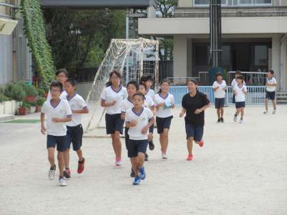 男女それぞれ目標設定タイムに向けて,一生懸命チャレンジしました。天気も良く,始業前とはいえ気温も高くなり,汗びっしょりの様子でしたがどの子も自分の目標に向けてしっかり力を出し切れていました。