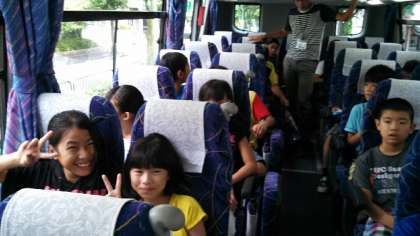 学校を出て北山通、白川通、367号線とバスが滋賀県、福井県方面目指して走ります。子どもたちはバスの中でそれぞれ楽しそうに過ごしています。
