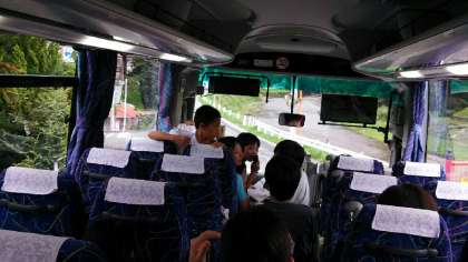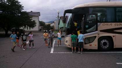 出発して、一時間少し走ったところで、滋賀県朽木の道の駅新本陣でトイレ休憩をとりました。道が空いているのであと一時間ほどで到着しそうです。休憩の後はリクリエーション係の児童がビンゴゲームを始めてくれました。