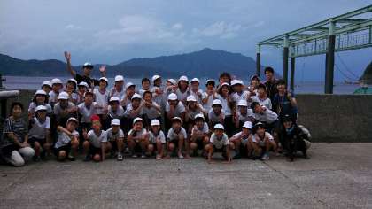 一日目午後の中心の活動、カッター体験を行いました。各クラスごとに1号艇、2号艇にわかれ、港から沖合いへ出ていきます。櫂をたて、下ろし、前へ引き、「ソーレ」の掛け声でみんなで力を合わせて船を進めます。波に向かって何回も沖に出て、とてもしんどかったけどとても満足できる活動でした。