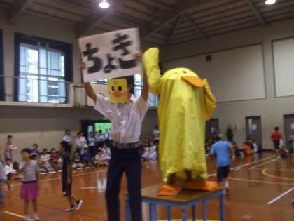 9月8日(火)の午後,加茂川中学校で小中交流会が行われました。加茂川中学校区小学校(紫明小・元町小・上賀茂小・紫竹小)の6年生が加茂川中学校に集まり,学習や交流会を体験しました。前半は中学校の授業を受け,後半は中学校の生徒会主催で様々な交流会を体験させていただきました。交流会では加茂川中学校生徒会公式マスコット「カモくん」が登場し,会場を盛り上げてくれました。