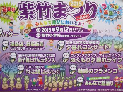 9月12日(土)15:00より21:00まで,本校の体育館・グラウンドを会場に,「紫竹まつり2015」(主催:紫竹まつり実行委員会)が行われる予定です。