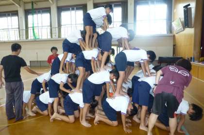 大技になればなるほど、土台になる人は想像を超えるほどの重さと痛さに耐えないといけません。上の人は、揺れないようにバランスを取るのが難しいです。