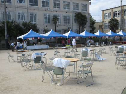 3時からの開会,3時10分からのバザー開始,模擬店開始に向けて「紫竹まつり2015」スタンバイの状態となりました。