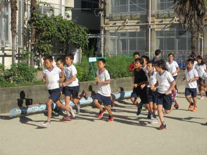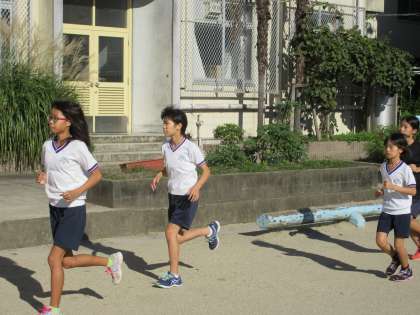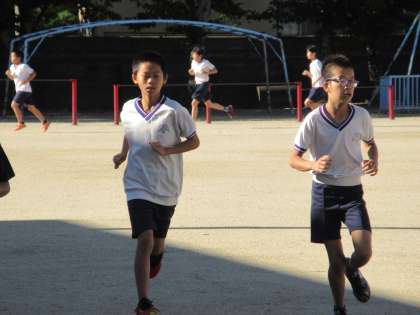 9月14日(月)の朝練習は,長い距離への対応力をつける練習です。週に1回は2000m(運動場外周コース10周)を走っています。