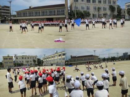 9月15日(火)3・4校時,運動会の全校練習を行いました。この日の練習は「入場行進」「開会宣言」「校歌斉唱」「優勝旗返還」「校長先生のお話」「児童代表開会の言葉」「応援シュプレヒコール」「全校体操」「退場」という流れでした。