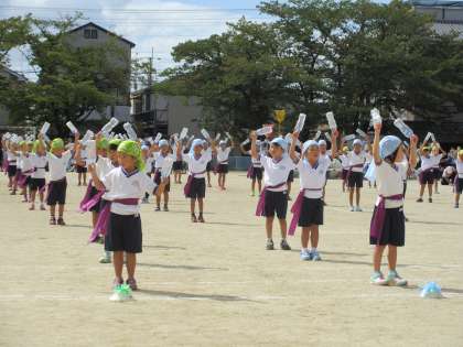 そして,1・2年生による団体演技・競技「ゆいゆい〜みんなでゆいまある おふねでゆいレース〜」です。