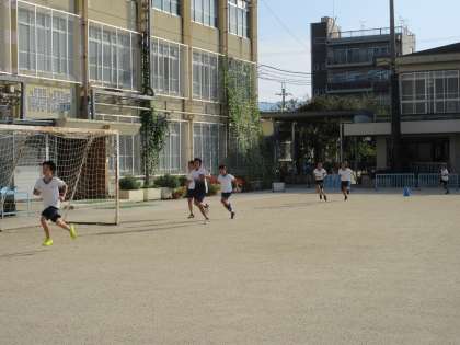 9月29日(火)の朝練習では,スピードとスタミナをつけることを目的に実践しているトレーニングを行いました。2組のペアを走力が均等になるよう作り,一人グラウンド外周を6回,交互にリレーしながら合計12周を他のペアと競うトレーニングです。