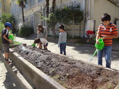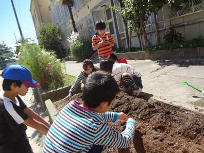 今年は,ちょっとゆっくりでしたが,冬野菜の大根と春に収穫するそら豆の種をまきました。「できたらどんな風にして食べる?」と嬉しそうです。明日からの水やりがまた楽しみになりました。