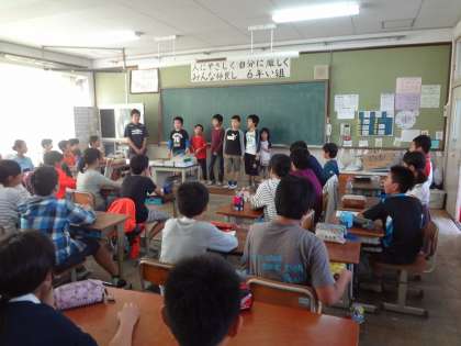 11月13日(金)の学習発表会の時に6年生お手伝いお願いします!とお願いに行って来ました!「たいよう学級バージョン メロンたろうのぼうけん」です。6年生のお兄さんお姉さんたちは,ニコニコしながらたいようの子どもたちのお願いを聞いてくれて「もちろん!一緒にやろう!」と言ってもらえました。今年は,6年生33名みんながいろいろな役割で参加してくれます。