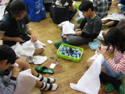 自分のデザインをイメージして,それぞれの藍染に仕上げることが出来ました。
