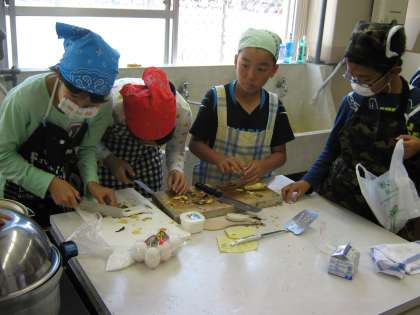 19日(月)に,畑で育てたサツマイモを調理して食べるさつまいもパーティーを行いました。事前にグループでメニューを決めて準備してきました。