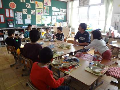 学習発表会に向けての給食交流でしたが,その後もまだ続いていたのです。「たいよう学級で食べると落ち着く!」と嬉しいことを言ってくれる6年生。「たいようさんは難しい漢字を読んでるな。6年は読めへんわ!」と来た時に話してくれます。今日は,伏見先生も一緒に食べました。6年の教室には,佐藤先生が。「伏見先生,こんな漢字読める?」と嬉しそうに聞いていました。