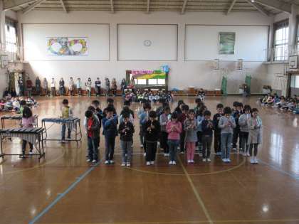 3年生は6年生にお世話になったことを感謝の気持ちをこめてコールを送り,合奏「エーデルワイス」,合唱「歌声高く」を披露しました。