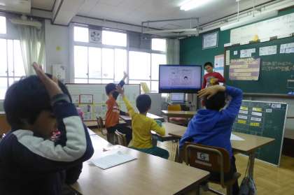 大きな声で発表するために,発声練習も頑張っています。