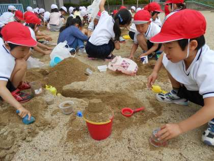 1・2時間目に図工の学習で,砂場で道具を使って穴を掘ったり,山を作ったり,形を作ったり楽しくできました。